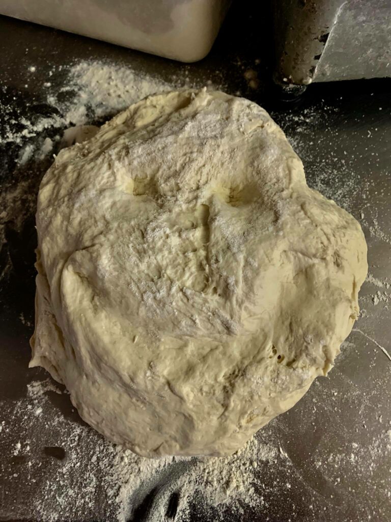 Ce qui distingue une bonne calzone d’une calzone ordinaire, c’est avant tout la pâte. Trop épaisse, elle écrase la garniture. Trop fine, elle cède à la cuisson et laisse tout s’échapper. Gillou travaille sa pâte à la romaine : pétrie sur place, reposée 24 à 48 heures, elle développe une structure alvéolaire qui lui permet de tenir la garniture sans s’alourdir. Au moment de la cuisson, la pâte gonfle légèrement, croustille en surface et reste moelleuse à l’intérieur. Ce contraste de textures — craquant dehors, tendre dedans — fait toute la différence.